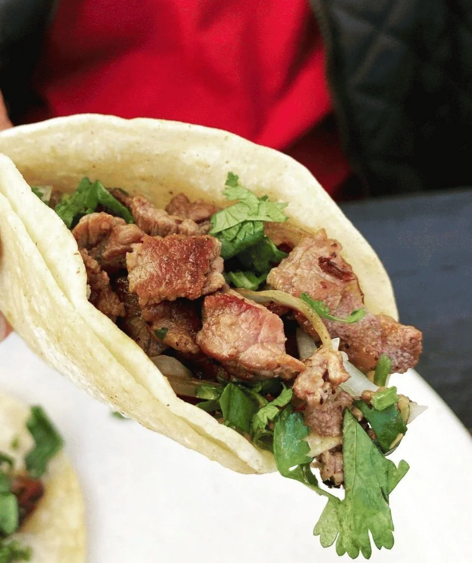 We show up, set up our plancha, cook tacos and charm your guests.